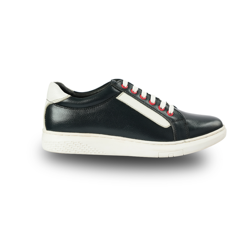 Chamda black lace-up sneakers feature a smooth leather upper with contrast detailing for a modern casual look. Built with a lightweight sole and cushioned interior, these shoes offer all-day comfort and effortless style, perfect for daily wear and relaxed outings.
