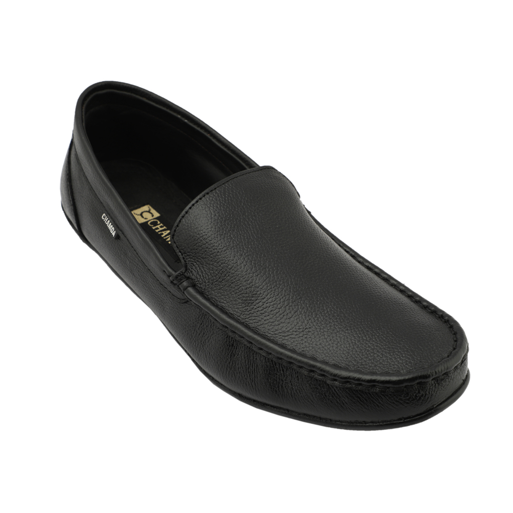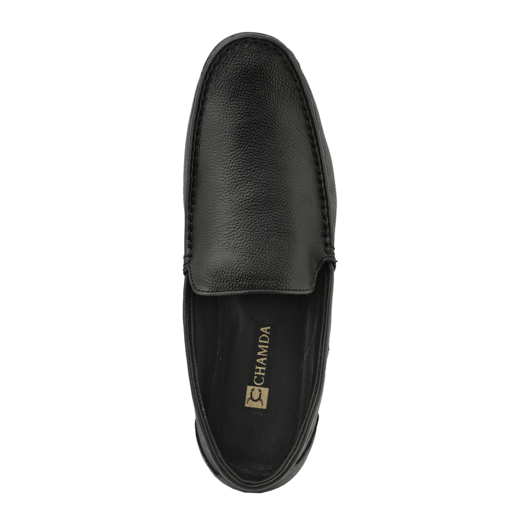 Chamda black leather slip-on loafers are crafted for everyday ease with a refined look. Designed with a smooth finish and comfortable fit, these loafers are ideal for long hours of wear while maintaining a smart, versatile style suitable for both work and casual outings.