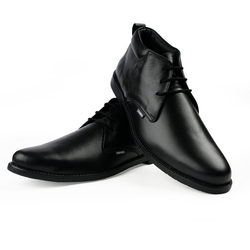 Elevate your formal wardrobe with these sophisticated black leather ankle boots, crafted for the discerning gentleman. Featuring premium genuine leather construction and a sleek silhouette, these boots seamlessly transition from office to evening occasions. The ankle-height design offers versatile styling options with tailored trousers or smart casual wear. Reinforced stitching and quality craftsmanship ensure durability through seasons of wear. A refined choice for those who demand both style and substance in their footwear collection.