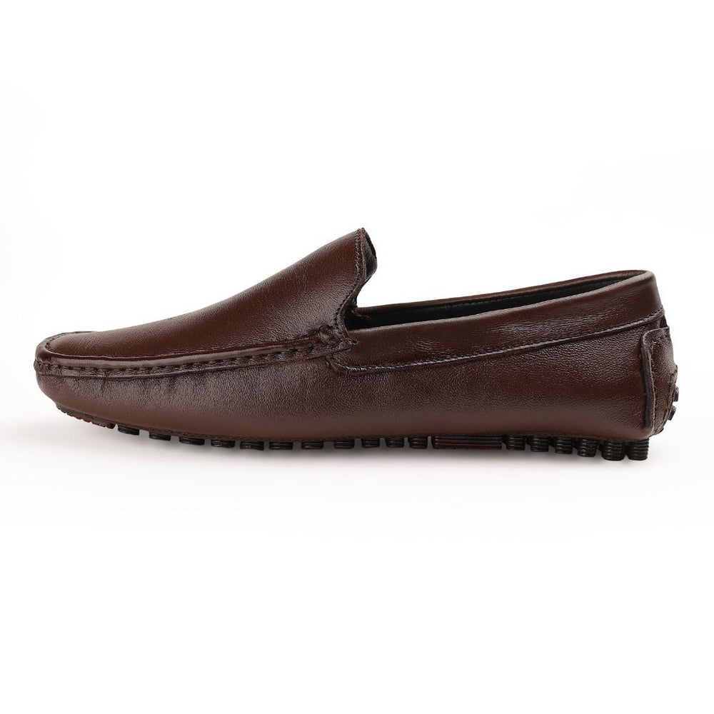Chamda Men's Brown Leather Slip-On Loafers combine timeless elegance with everyday practicality. Crafted from premium brown leather, these loafers feature a refined slip-on design that eliminates lacing while maintaining a polished appearance. The cushioned insole provides all-day comfort, making them ideal for both professional settings and casual outings. Durable construction ensures longevity, while the versatile brown shade pairs effortlessly with dress trousers, jeans, or chinos. A sophisticated choice for the discerning gentleman seeking quality footwear that transitions seamlessly from office to weekend.