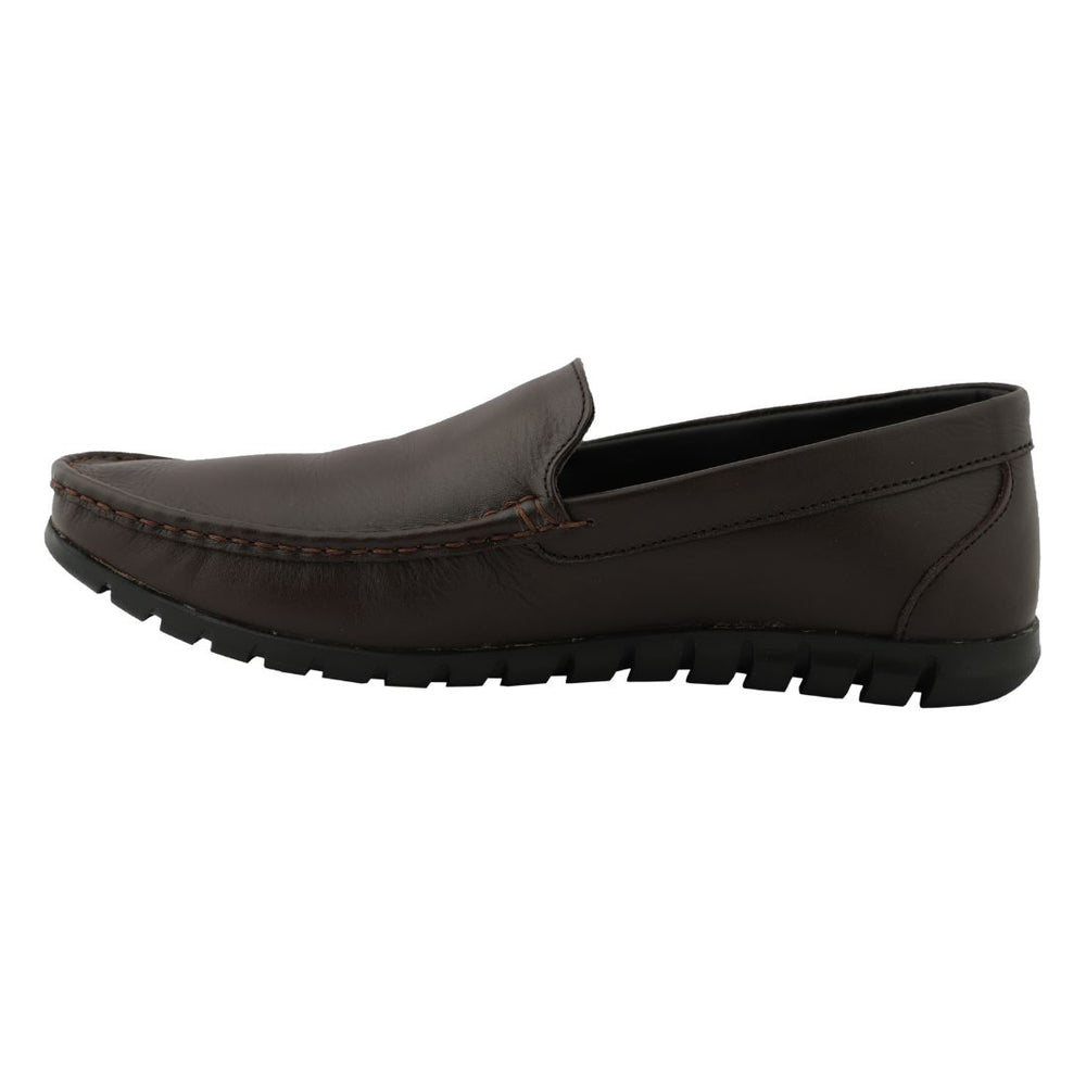 Chamda Men's Dark Brown Slip-On Leather Loafers combine timeless elegance with everyday practicality. Crafted from premium leather, these loafers feature a refined slip-on design that eliminates lacing hassles while maintaining a polished appearance. The rich dark brown hue complements both formal and casual wardrobes, transitioning seamlessly from office settings to weekend outings. Designed with comfort in mind, the loafers provide reliable support for extended wear. An essential addition to any discerning gentleman's footwear collection, these loafers deliver versatile style without compromising on quality or durability.