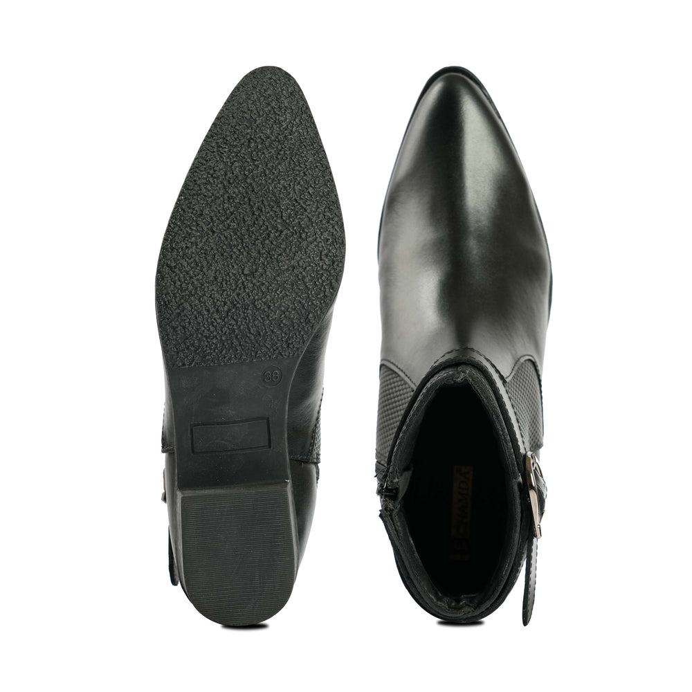 Elevate your everyday wardrobe with these timeless black ankle boots, expertly crafted for versatility and comfort. The signature buckle detail adds a refined touch, while the sleek silhouette pairs effortlessly with jeans, dresses, or professional attire. Designed with quality construction and a supportive fit, these boots deliver both style and durability for year-round wear. A wardrobe essential that transcends seasonal trends.